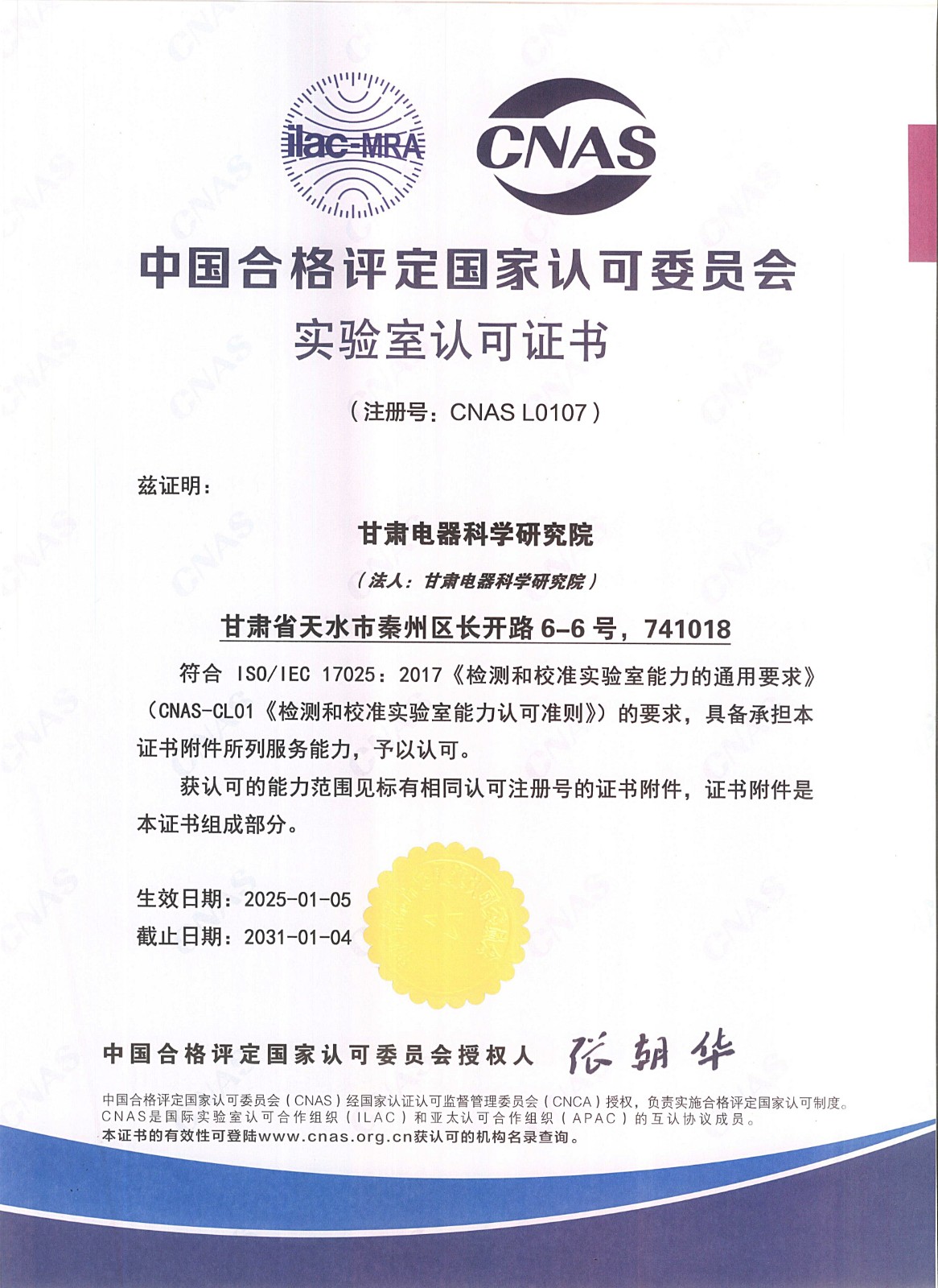 國(guó)家電力測(cè)量用互感器型式評(píng)價(jià)實(shí)驗(yàn)室(甘肅)